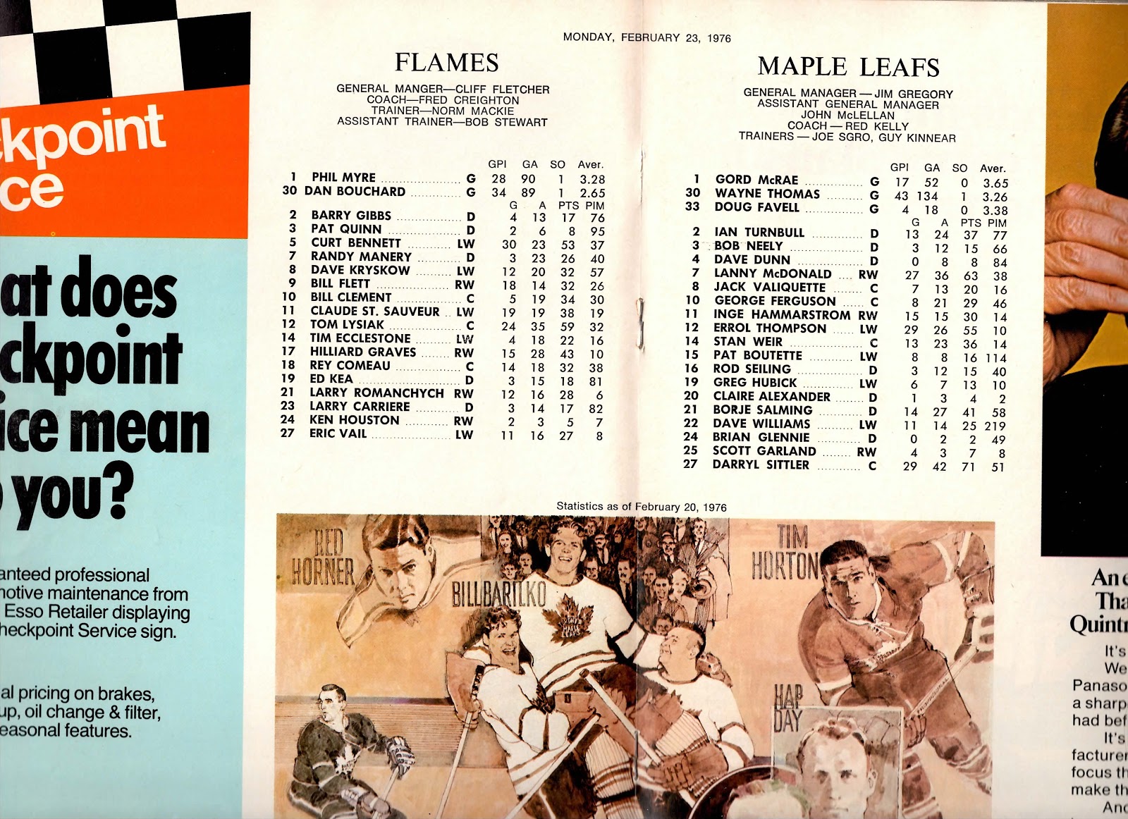 February 23, 1976 game versus Atlanta Flames. Wayne Thomas pictured. |