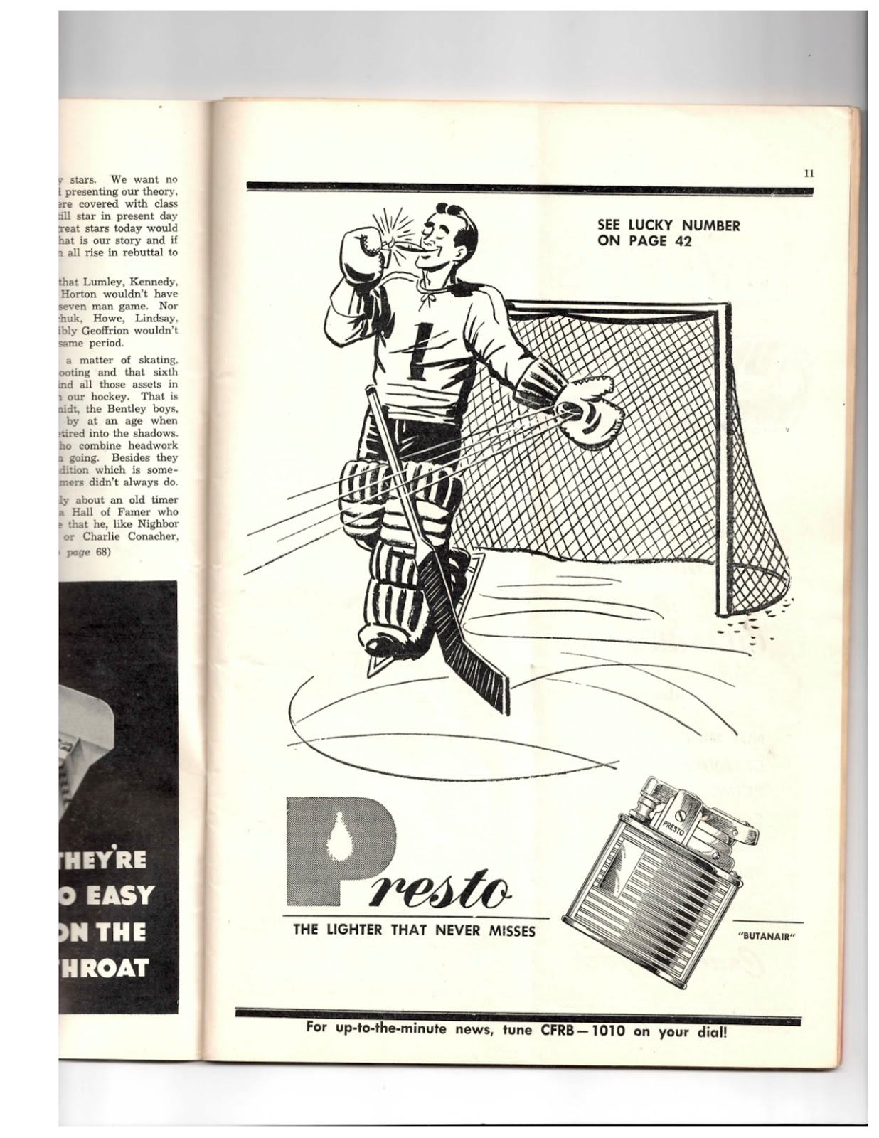 Back then it was perfectly fine to have an ad showing a goalie enjoying his stogie during the game